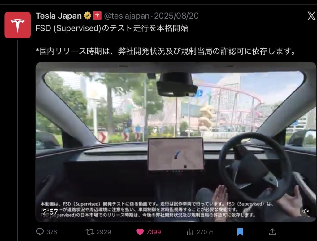 2025年8月20日、テスラジャパンの公式Xでこんな投稿があったのです!